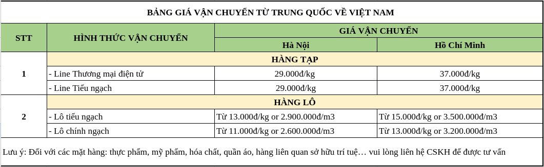 VẬN CHUYỂN HÀNG HOÁ CHÍNH NGẠCH